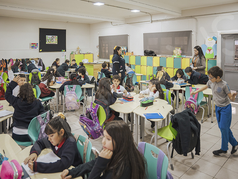 Componentes: Pantallas interactivas, mobiliario móvil, zonas de creación, tecnología educativa.