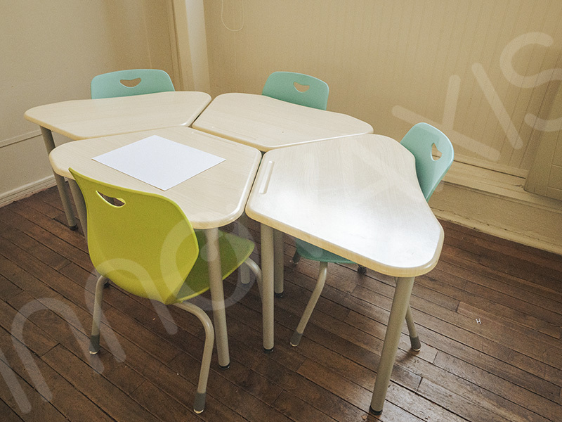 - Zona de colaboración: mesas grupales para proyectos y debates.