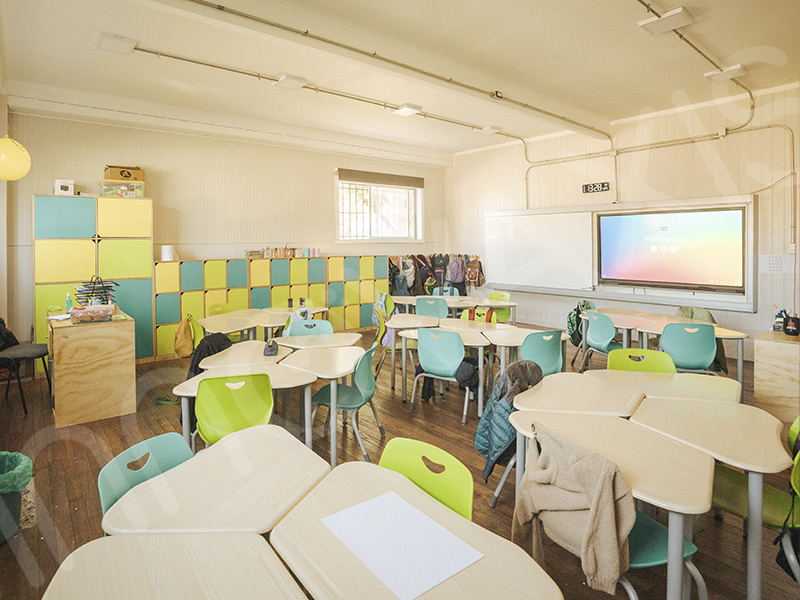 - Diseño flexible y modular: mobiliario móvil que permite adaptar el espacio según la dinámica (trabajo grupal, exposiciones, laboratorios de ideas, clases híbridas).