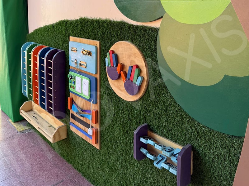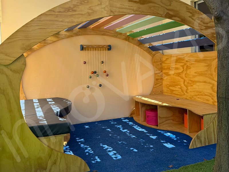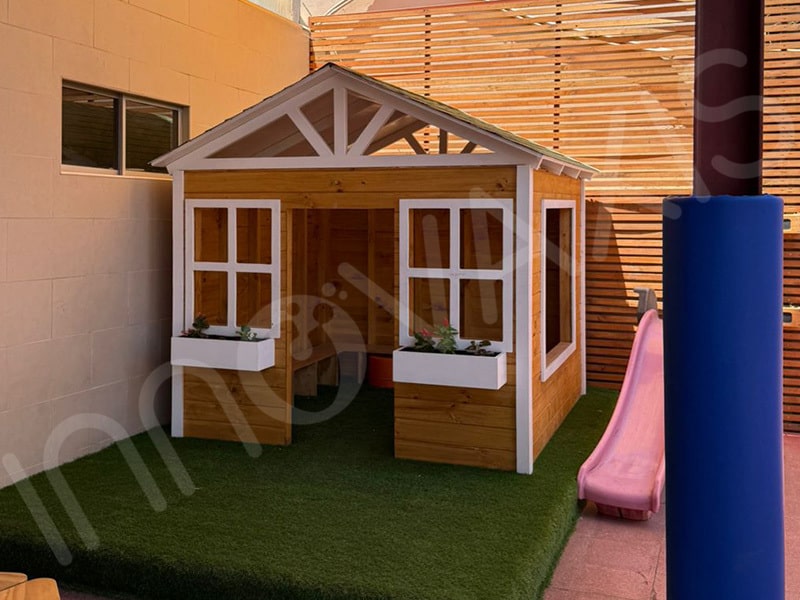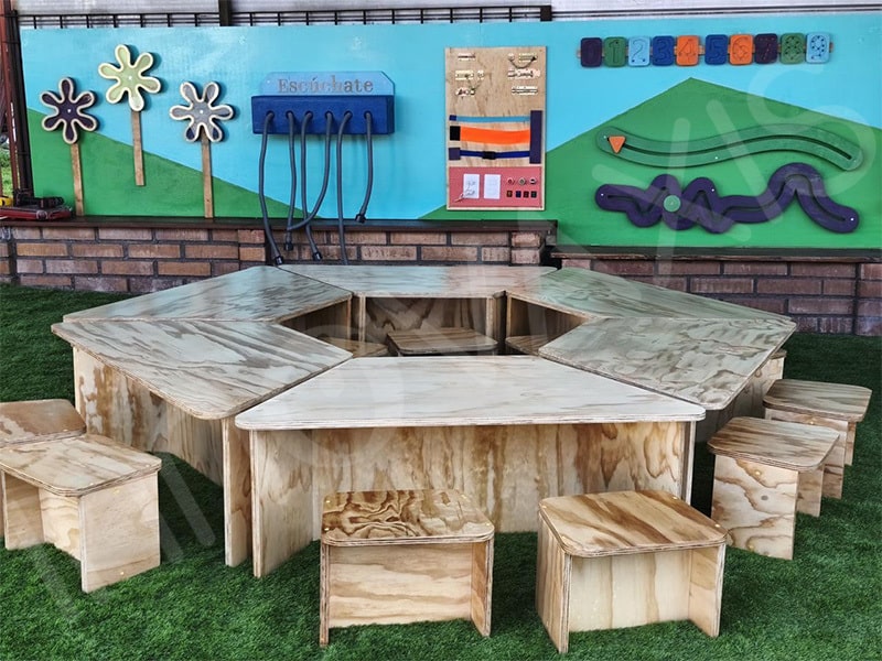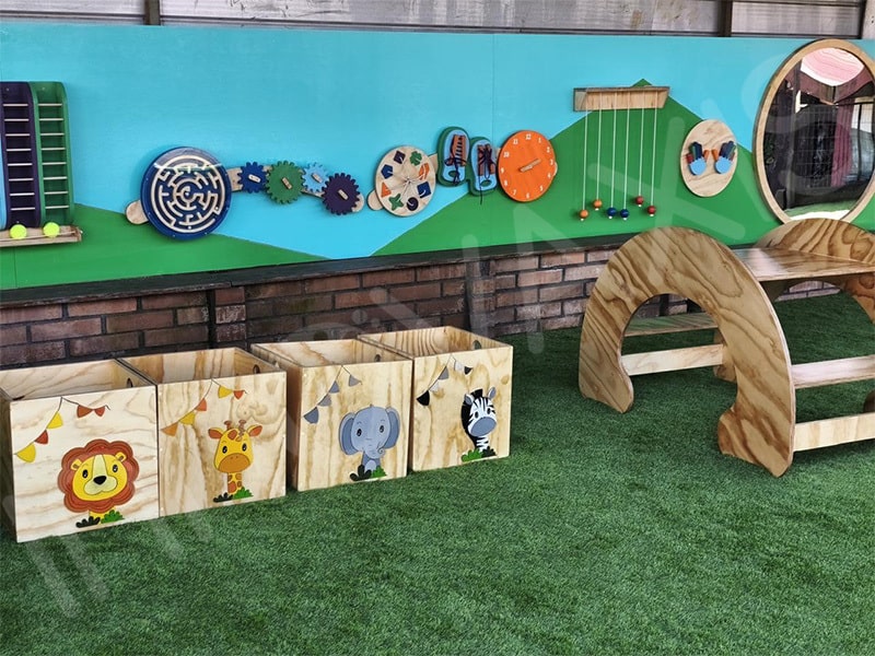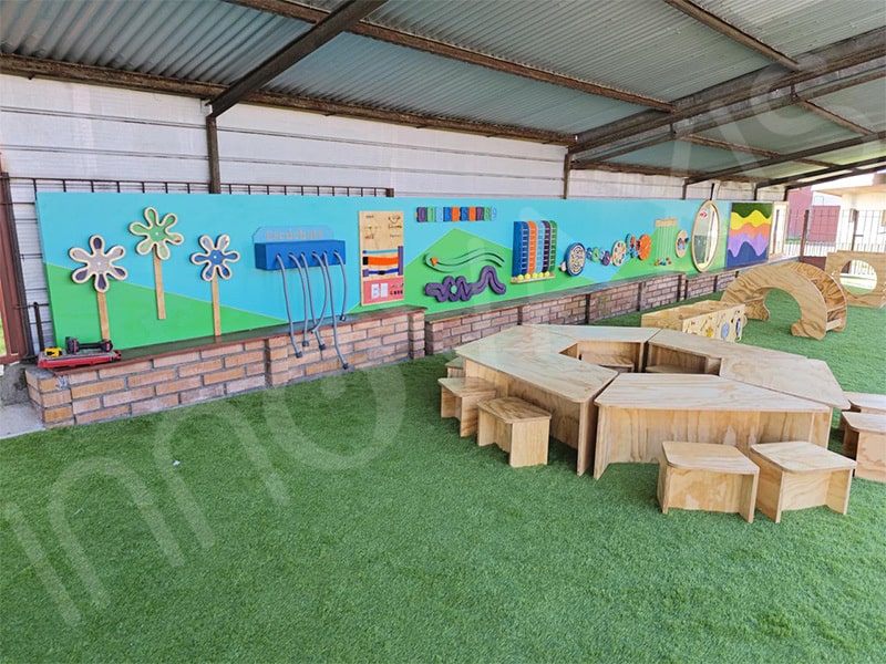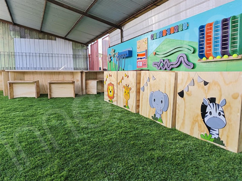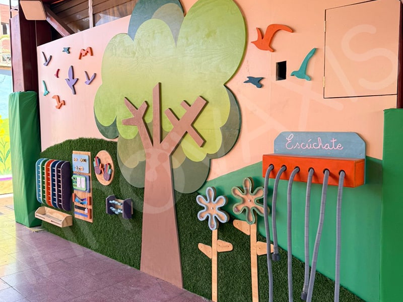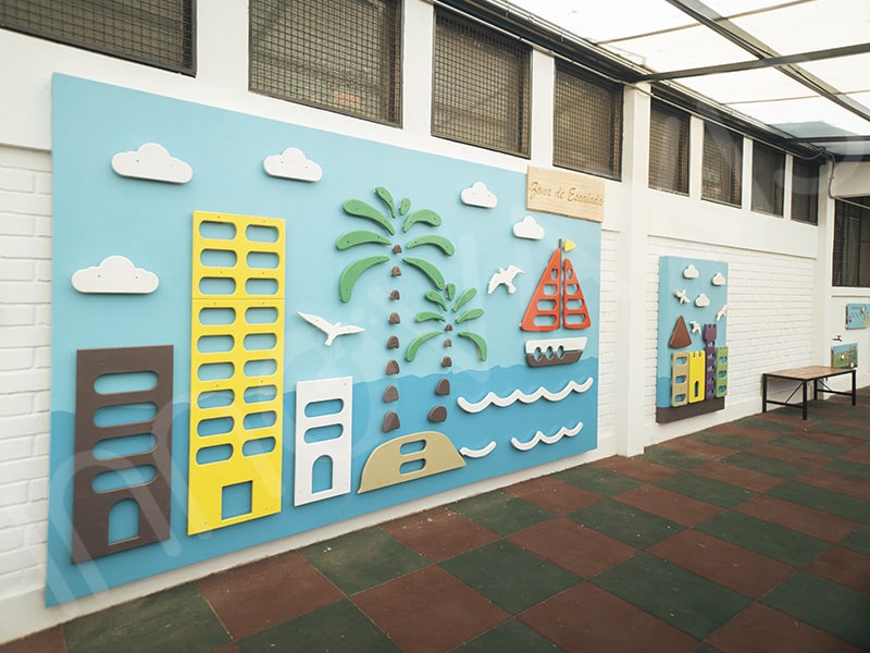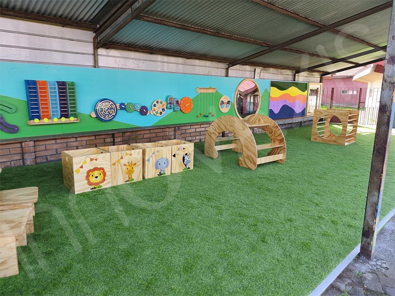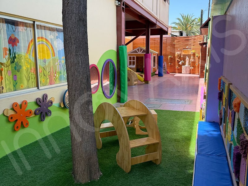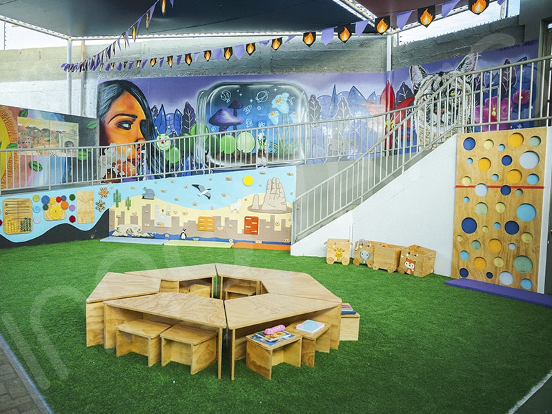 Nuestro servicio comprende desde la transformación física del espacio, a cargo de nuestro equipo de construcción, incluyendo reparaciones, pintura, instalaciones, construcción de mobiliario, entre otros, hasta la implementación de componentes como paneles sensoriales, juegos de alto tráfico, muros de escalada, murales artísticos, huertos verticales y otros.